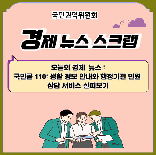 이 글은 국민콜 110의 역할과 서비스에 대해 소개하고 있습니다. 국민콜 110은 생활정보 안내와 행정기관 민원 상담을 처리하는 곳으로, 다양한 분야의 민원을 아우르고 있습니다. 상담은 다양한 방법으로 실시간으로 제공되며, 전문 교육을 받은 상담사가 도움을 드립니다.