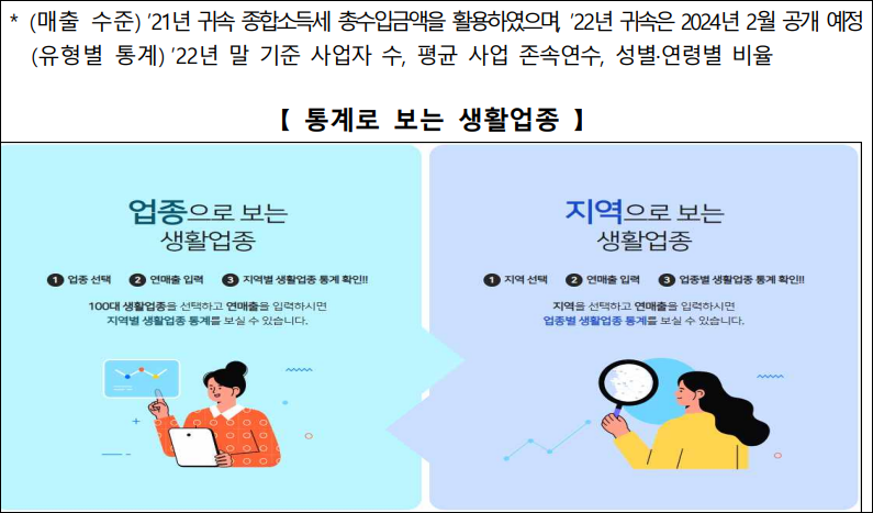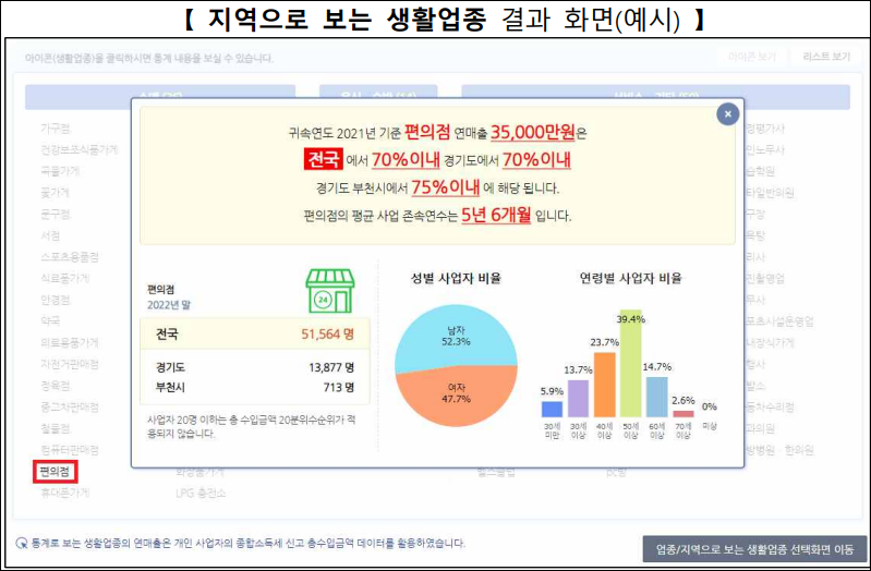 통계로 보는 생활업종: 업종별, 지역별 매출 수준 및 유형별 통계 제공