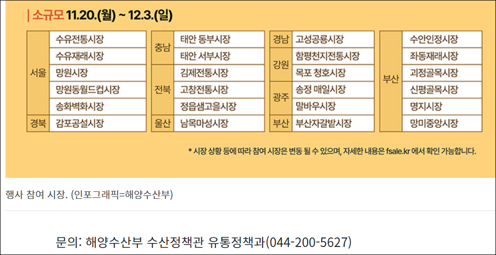 이 행사에 대한 자세한 내용은 '대한민국 수산대전' 공식 누리집(www.fsale.kr)에서 확인할 수 있다.