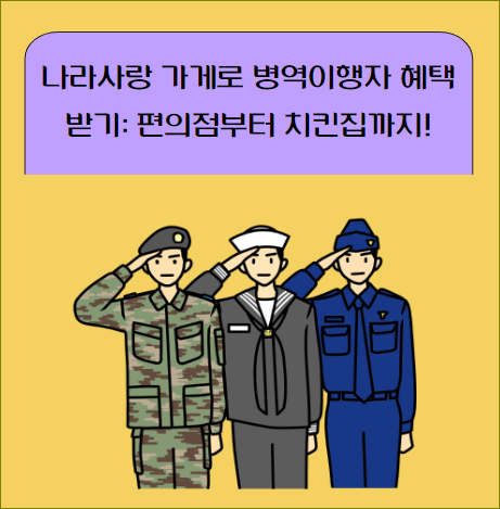 병무청의 나라사랑 가게 사업은 병역이행자들에게 편의점, 치킨집, 카페 등에서 특별 할인 혜택을 제공하여 존경과 예우를 표현합니다. 전국 1,268개 업체가 참여 중이며, 앞으로 더 많은 업체가 참여할 예정입니다. 이 글에서는 나라사랑 가게 사업의 혜택, 참여 방법, 확대 계획 등을 종합적으로 소개합니다.