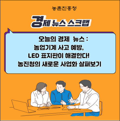 농촌진흥청은 사물인터넷(IoT) 기술을 활용한 ‘농업기계 사고 예방 기술 사업화’를 추진한다고 밝혔습니다. 이는 농업기계에 붙인 단말기와 도로에 설치된 LED 주행 안내표지판 간의 근거리 무선통신을 통해 이루어집니다. 또한, 전도·전복 사고 감지 알람 기술도 개발하여 단말기에 추가했습니다.