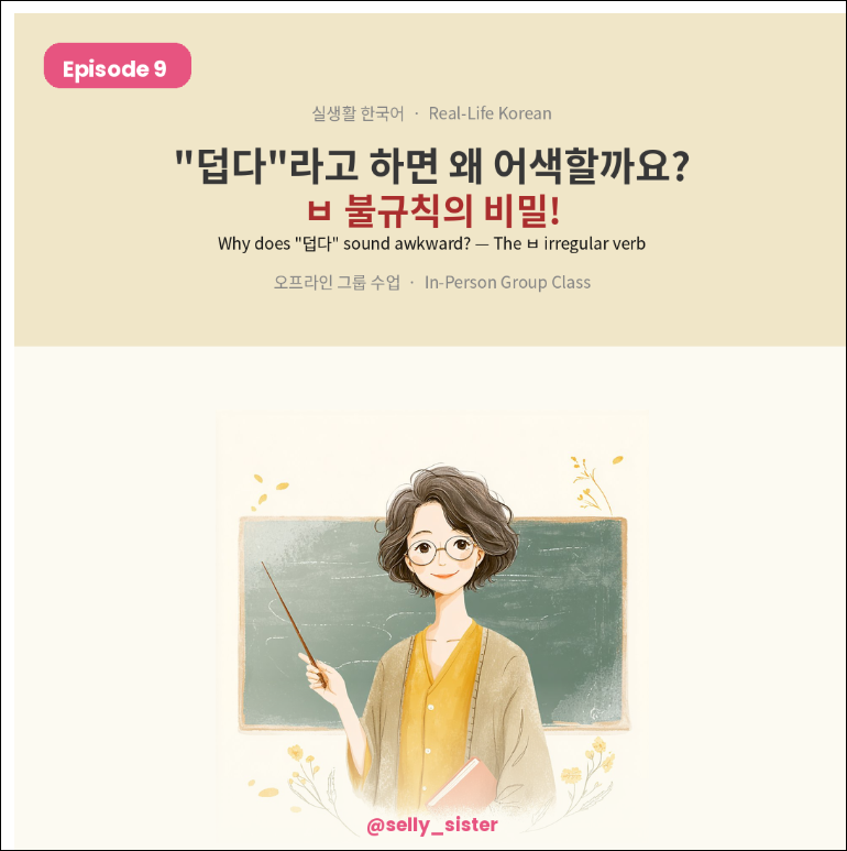 ▶ 다음 편 — 10편 : "'듣다'가 왜 '들어요'가 될까요?" — ㄷ 불규칙 Next: Why does 듣다 become 들어요? — The ㄷ irregular verb