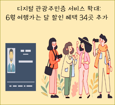 디지털 관광주민증" 서비스가 6월 여행가는 달을 맞아 확대되며, 이는 인구감소 지역을 대상으로 발급되는 명예 주민증으로, 지역에서 각종 할인 혜택을 받을 수 있는 것입니다. 2022년 출시된 이 서비스는 현재 70만 명 이상의 발급자를 보유하고 있습니다. 새로운 지역은 총 34곳으로 확대되며, 관광주민증 보유자들은 할인을 받을 수 있는 관광시설과 업체는 800여 곳에 이릅니다.