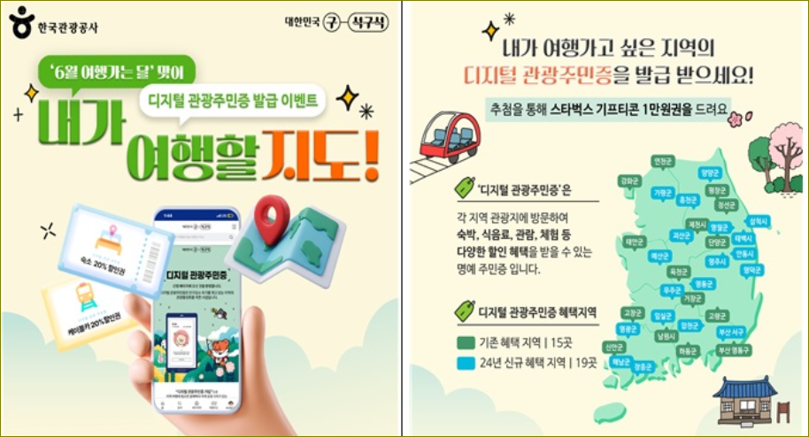 6월 여행가는 달을 맞아 디지털 관광주민증 서비스 지역이 내달 1일부터 기존 15곳에서 34곳으로 2배 이상 늘어난다. 디지털 관광주민증(이하 관광주민증)은 지방소멸 위기를 겪고 있는 인구감소