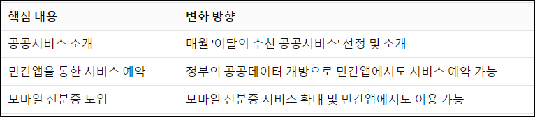 이번에 소개된 공공서비스는 우리의 일상을 더욱 편리하게 만들어줍니다. 민간앱을 통한 서비스 예약과 모바일 신분증은 현대 사회에서 필수적인 요소로 자리잡고 있습니다. 이러한 변화를 알리고, 우리의 삶에 적용하는 것이 중요합니다.