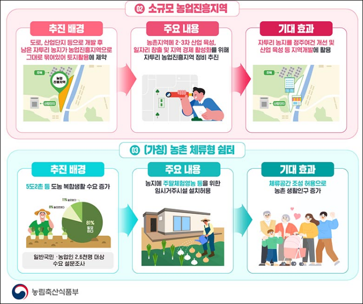 2. 수직농장의 농지 내 설치 허용 및 농촌 체류형 쉼터 도입은 농업 생산성 향상과 농촌 지역의 정주여건 개선을 위함이다.