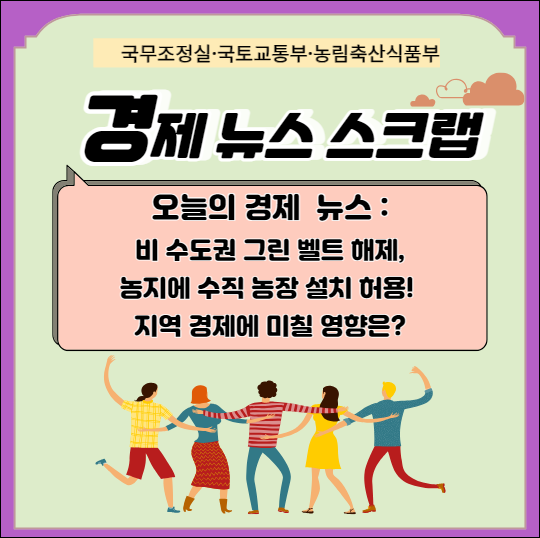 아마도 최근 비수도권 그린벨트의 대폭 해제와 수직농장 도입, 농촌 체류형 쉼터의 설립 소식을 들어 보셨을 거예요. 이는 지역경제 활성화와 농업 생산성 증가의 새로운 가능성을 열어줄 기대주입니다. 특히, 이런 변화는 농촌 지역의 정주여건을 개선하고, 농업의 혁신을 이끌어갈 수 있는 발판이 될 것이라고 생각해요. 우리 모두 이 변화를 적극적으로 받아들이고, 실제로 적용해 보면 어떨까요? 농촌 지역의 새로운 활력을 느끼고 그 혁신적인 변화를 함께 나누는 시간이 될 것입니다.