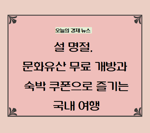 2025년 설 명절을 맞아 정부는 국내 관광을 활성화하기 위한 다양한 대책을 발표했습니다. 고속도로 통행료 면제, KTX 할인, 문화유산 무료 개방 등 여러 혜택이 마련되어 있어 가족과 함께 즐거운 여행을 계획할 수 있는 기회입니다. 이번 대책을 통해 안전하고 즐거운 명절을 보내세요!