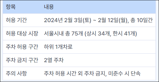 2024년 설명절 전통시장 주차허용구간 운영 개요