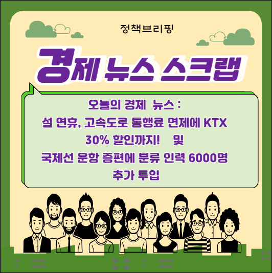 정부가 설 연휴 기간 고속도로 통행료를 면제하고 KTX와 수서고속철도(SRT) 등 고속철도 역귀성 승차권을 30% 할인한다. 취약 계층에 대한 전기요금 인상은 1년 더 유예하고, 제 2금융권 대출을 받