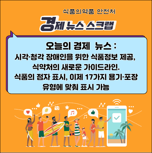 식품의약품안전처가 시각·청각 장애인이 식품 정보를 쉽게 확인하고 식품을 선택하도록 식품의 점자 표시 등에 대한 가이드라인을 개정했습니다. 이 가이드라인은 다양한 용기·포장의 재질·형태에 따른 세분화된 표시기준을 제시하며 점자 및 음성·수어영상 QR코드를 표시하는 위치를 정했습니다.