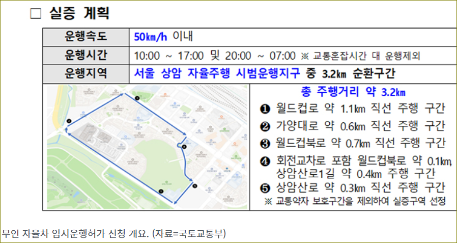목적 | 무인 자율주행 기술 활성화 및 안전성 검증을 위한 임시운행 허가. |