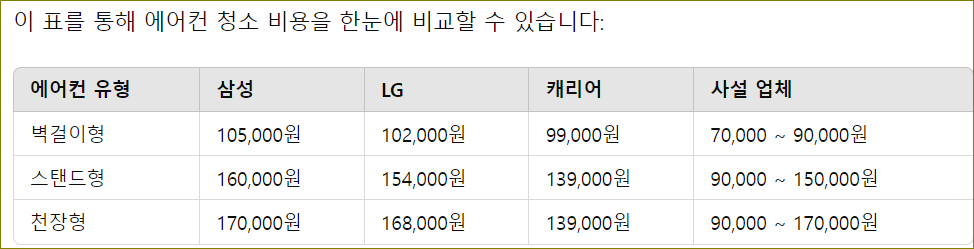 구글에서 에어컨 청소 비용 분석