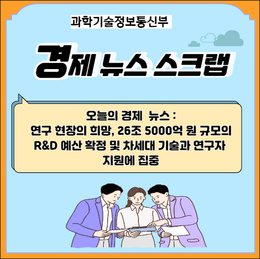 2024년도 정부 연구개발(R&D) 예산이 26조 5000억 원으로 확정됐습니다. 이는 기존 대비 6271억 원이 증가한 수치입니다.