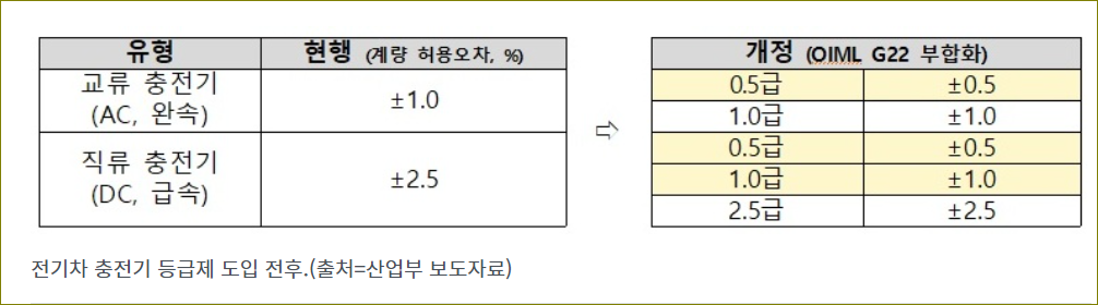 허용 오차에 따른 형식승인 등급이 세분화되어 충전기 제조사들이 더 정밀한 제품을 생산하도록 유도합니다. 이는 결국 전기차 운전자들이 더 신뢰할 수 있는 충전기를 사용하게 하여 공정거래를 활성화하는 데 기여합니다.