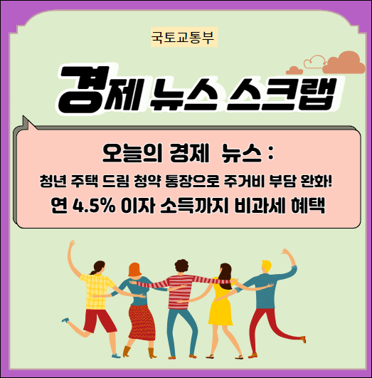 국토교통부에서는 청년 주택 구입과 자산 형성을 지원하기 위해 청년주택드림청약통장을 출시합니다. 이 통장은 19~34세 연령대의 무주택자 중 연소득 5000만 원 이하인 청년들을 대상으로 월 100만 원까지 납입할 수 있는 제도입니다. 통장에 납입한 금액에는 최대 연 4.5%의 금리와 40%까지의 소득공제 혜택이 제공되며, 분양에 당첨되면 80%까지의 분양가를 2%대의 대출로 지원받을 수 있습니다. 청년주택드림청약통장은 전국 주택도시기금 수탁은행에서 신청 가능하며, 은행별로 다양한 가입행사가 진행됩니다. 이를 통해 청년들은 주택 청약부터 대출까지 한 번에 해결할 수 있습니다.