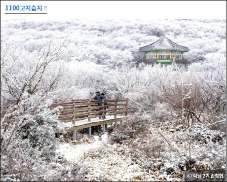 1. 1100고지습지: 차를 타고 1100 도로를 따라 산 중턱까지 올라가면 됩니다. 1100 고지 휴게소에서 라면을 먹고 추위를 녹일 수 있습니다.