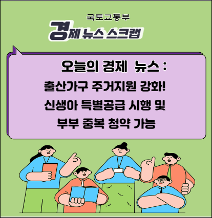 정부는 신생아 특별공급(우선공급)을 도입하여 출산 가구를 위한 주택 지원 정책을 강화한다. 이에 따라 신생아가 있는 가구는 주택 청약 시 우선적으로 고려되며, 이를 위해 공공주택 특별법 시행규칙이 개정되었다. 또한, 부부 중복 청약이 가능하며 배우자의 청약통장 기간을 합산하여 인정한다.