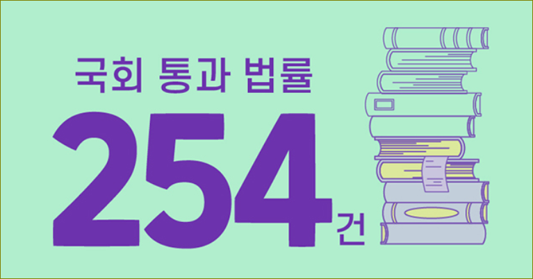 지난 2년간 법제처와 법률 소관 부처의 노력으로 국회를 통과한 법안이 총 254건에 달하는데, 이는 국가의 발전과 취약계층 지원 등 다양한 측면에서 법률 개혁이 이뤄졌음을 보여줍니다. 주요 내용으로는 건축규제 완화, 중소기업 지원 강화, 하도급거래 공정화, 아동수당 및 생계지원 강화, 안전 및 범죄 예방 관련 제도 개선 등이 포함되어 있습니다. 이를 통해 국가의 발전과 안전, 그리고 취약계층의 복지 지원 등 다양한 측면에서 법률의 역할이 크게 강화되었습니다.
