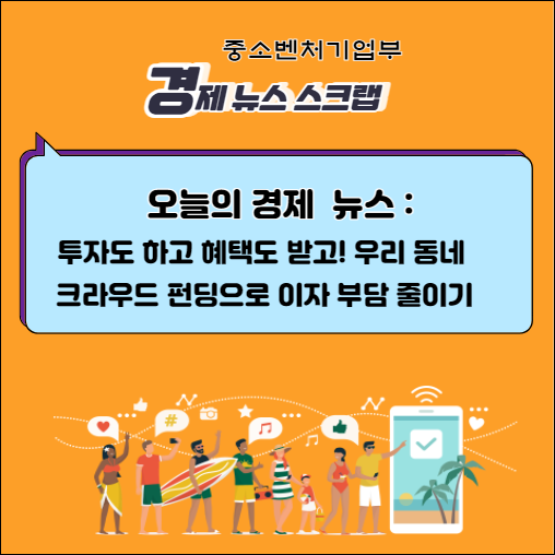 중소벤처기업부가 소상공인을 대상으로 한 ‘우리 동네 크라우드펀딩 사업’을 추진한다고 발표했습니다. 이 사업은 지역주민, 직장인, 투자자 등이 소상공인에게 투자하고, 수익을 현금이나 쿠폰, 할인권 등의 현물 리워드로 받을 수 있는 프로그램입니다.
