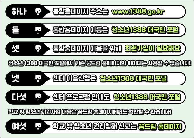 ※ 꿈드림 센터 및 학교 밖 청소년 검진기관 찾기 https://www.kdream.or.kr:446/user/index.asp 바로가기