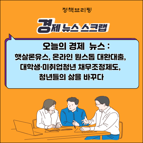 청년들이 빚의 굴레에서 벗어날 수 있도록 도와주는 여러 정책들이 있다는 것을 알아보았어요. '햇살론 유스'라는 대출 제도는 대학생이나 취업 준비생들이 경제적 어려움을 겪을 때 도움을 줘요. 또한 '온라인 원스톱 대환대출'은 고금리 대출로 부담을 겪는 사람들이 금리를 낮추고 부담을 줄일 수 있게 도와줍니다. 마지막으로 '대학생·미취업청년 채무조정 제도'는 채무를 감면해주고 상환 유예 기간을 제공함으로써 청년들이 빚에서 벗어날 수 있는 기회를 제공합니다. 이런 제도들을 잘 활용하면 청년들이 더 편안하게 삶을 이어갈 수 있을 것 같아요.