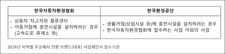 환경부는 2024년 전기차 공용 충전시설 설치 보조사업 예산을 전년 대비 42% 증가한 3715억 원으로 늘려 충전 인프라를 확충하겠다는 계획을 밝혔다. 이를 통해 7kW급 완속충전기 11만 개와 100kW급 급속충전기 1만 875개를 추가로 설치할 계획이며, 이를 위해 직접신청 보조사업과 지역별 무공해차 전환 브랜드 사업에 각각 지원할 예정이다. 이로서 전기차 보급 확대에 따른 충전소 부족 문제를 해결하려는 것이다.