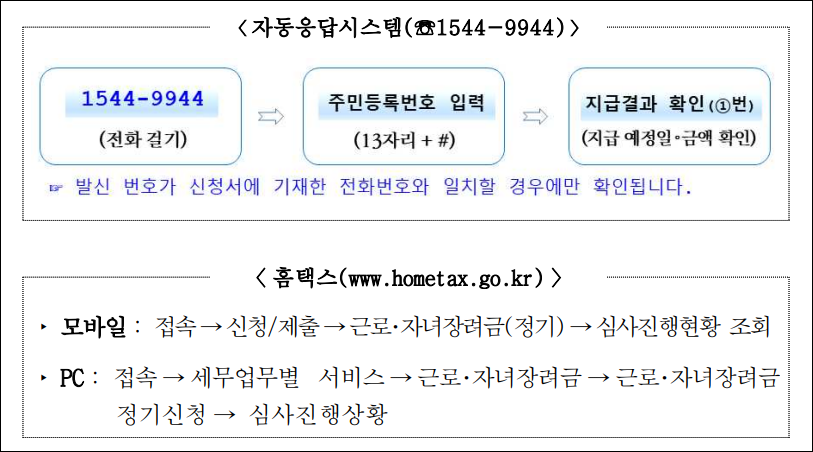 | 신청 방법 및 유의사항 | 홈택스와 ARS를 통한 간편신청 가능. 금융정보(계좌비밀번호 등) 요구하지 않음을 유의해야 함. |