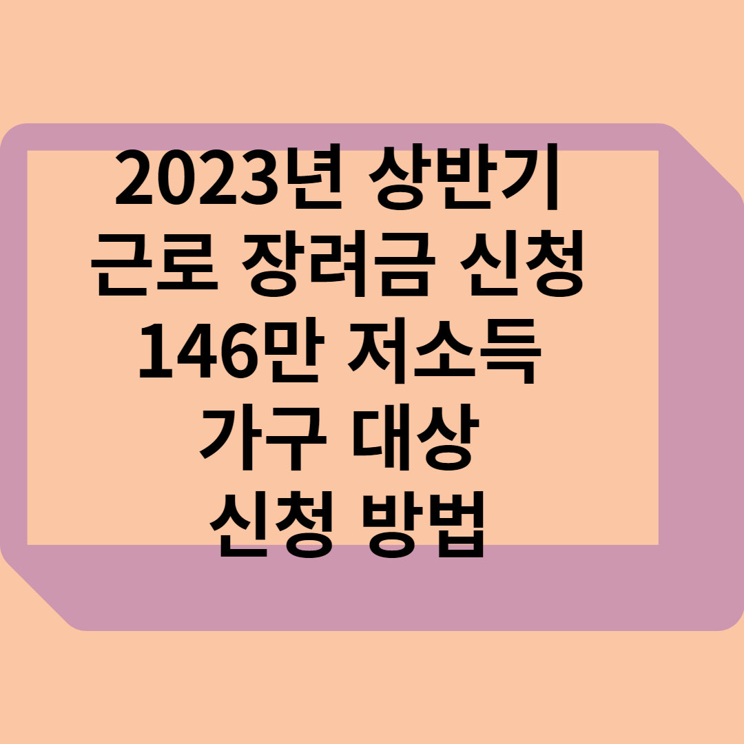| 2023년 귀속 상반기분 근로장려금 신청 | 저소득 가구 대상, 9월 1일~15일까지 신청, 12월 지급. 대상자 약 146만 명 |