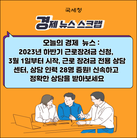 이 글은 2023년 하반기 근로장려금 신청에 관한 중요한 정보를 제공합니다. 3월 1일부터 시작되는 신청, 자동 신청 동의 대상 연령 확대, 근로장려금 전용 상담센터 상담 인력 증원, 모바일 웹 신청 서비스 도입 등의 내용을 담고 있습니다. 또한, 근로장려금 신청을 사칭한 전화금융사기에 대한 주의 당부도 포함되어 있습니다.