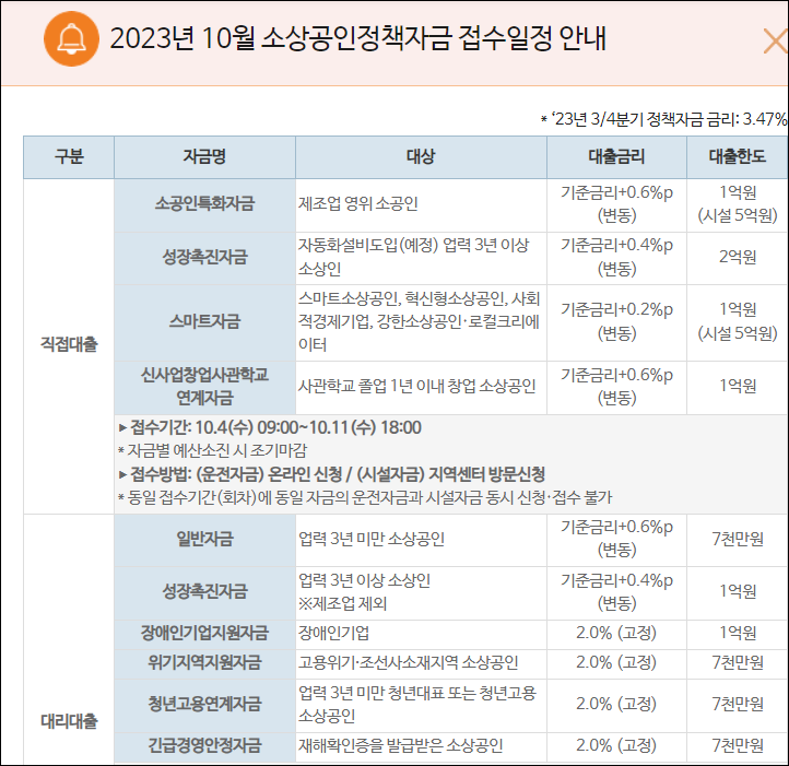 소상공인 정책 자금 4분기 접수 개시 안내