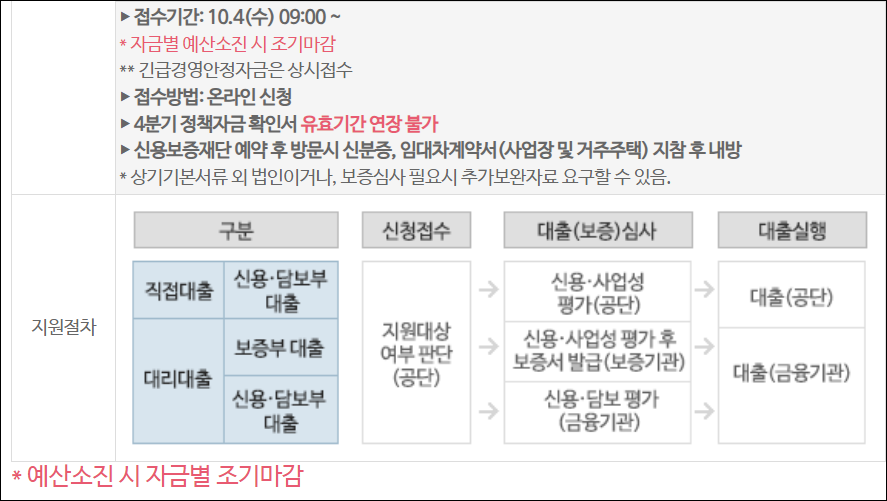 - 자금별로 조기 마감될 수 있음.