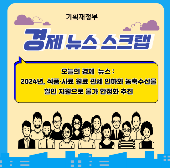 이 글은 정부가 내년에 식품과 사료 원료에 대해 3200억 원 상당의 관세를 인하하고, 농축수산물 할인지원에 2418억 원을 투입하는 등 여러 조치를 통해 물가 안정화와 수출·신성장 프로젝트 애로해소를 추진하려는 계획을 소개하고 있습니다. 이러한 조치는 최근 석유류·농산물 가격의 하락세와 수에즈 운하 통행 차질, 한파 등의 불확실성을 고려한 것으로, 수출바우처 발급액 선택권 확대, 해외 지식재산권 취득 지원 확대 등의 방안도 포함하고 있습니다.