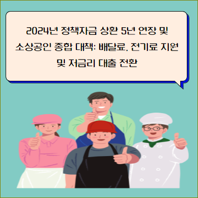 정부는 2024년 소상공인 종합대책을 통해 배달료와 전기료 지원을 확대하고, 고금리 대출을 저금리 대출로 전환하는 등 다양한 지원을 제공합니다.