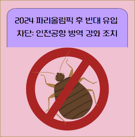 2024년 파리 하계올림픽 및 패럴림픽이 종료된 후, 전 세계에서 모여든 인파로 인해 빈대의 국내 유입 가능성이 제기되고 있다. 이를 막기 위해 정부는 인천국제공항을 중심으로 빈대 방역 조치를 대폭 강화하기로 했다. 이 조치는 항공기와 공항 내 주요 구역에 대한 소독 및 모니터링을 강화하여 빈대 유입을 선제적으로 차단하는 것을 목표로 한다.