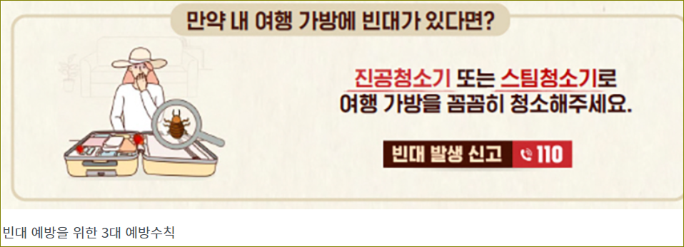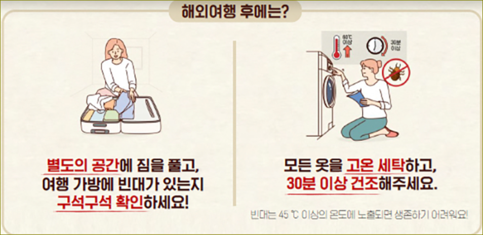 | 빈대 예방수칙 홍보 | 공항 검역소와 해외 감염병 신고센터 등 49개 장소에서는 모니터를 통해 빈대 예방수칙을 홍보할 예정이다. |