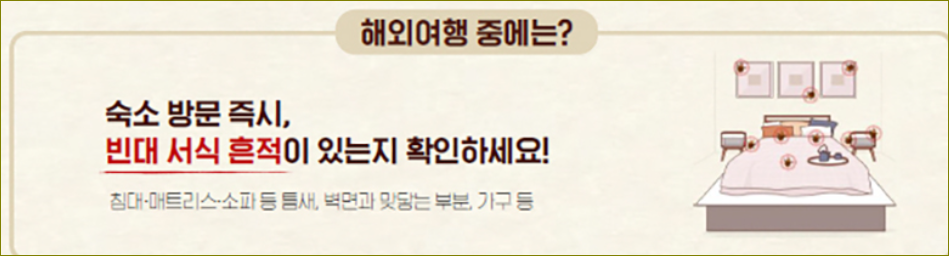 | 공항 소독 강화 | 인천국제공항의 주요 구역인 환승 라운지와 입국장 등은 기존 월 1회 소독에서 주 1회로 빈도수를 늘린다. 또한, 휴게공간과 수하물 수취구역 등 주요 접점 시설에는 빈대 트랩을 설치하고 모니터링을 실시한다. |