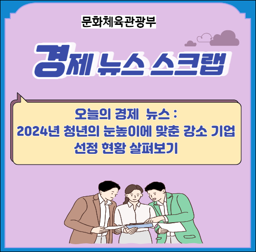 | 2024년 청년의 눈높이에 맞춘 강소 기업 선정 현황 살펴보기 (0) | 2023.12.27 |