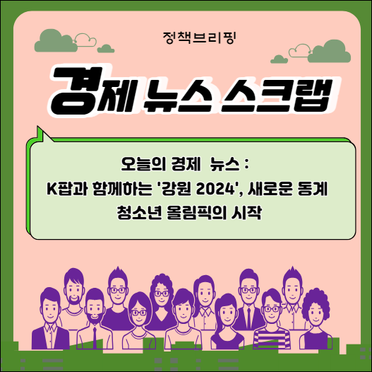 강원 2024, 청소년이 주인공인 동계 청소년올림픽이 1월 19일 개막합니다. 전 세계 79개국의 1803명의 청소년 선수들이 참가해 14일간의 경기를 펼칩니다. 이 대회는 승패보다는 청소년들이 스포츠를 통해 꿈을 키우고, 우정을 나누는 것을 목표로 합니다. 다양한 문화행사와 함께 대회를 찾은 관람객들에게 즐거움을 선사한다는 계획입니다.